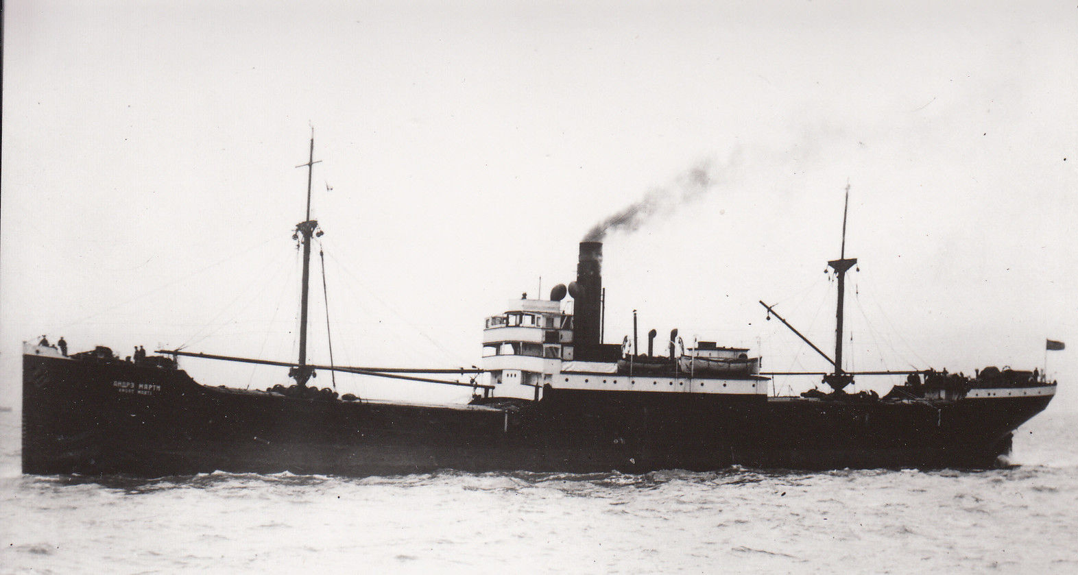 Бывший английский грузовой пароход, первоначальное название "War Drum". Построен в 1918 г. ("Austin & Son", Сандерленд, Великобритания) как стандартное судно типа "D". В июне 1921 г. приобретен совместным российско-английским АО "Аркос" для карских экспедиций. С 18.07.1924 г. входил в состав СГК Совторгфлота. 1.01.1940 г. вошел в состав Северного государственного морского пароходства.